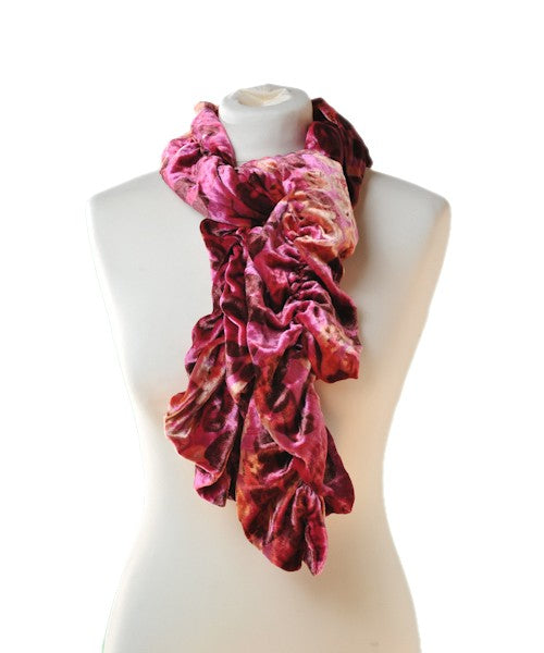 The ruffle effect on this scarf makes it a unique and interesting change from the classic velvet scarf. It is available in a choice of colours and makes a distinctive addition to an outfit, just wear and go, as simple as that!